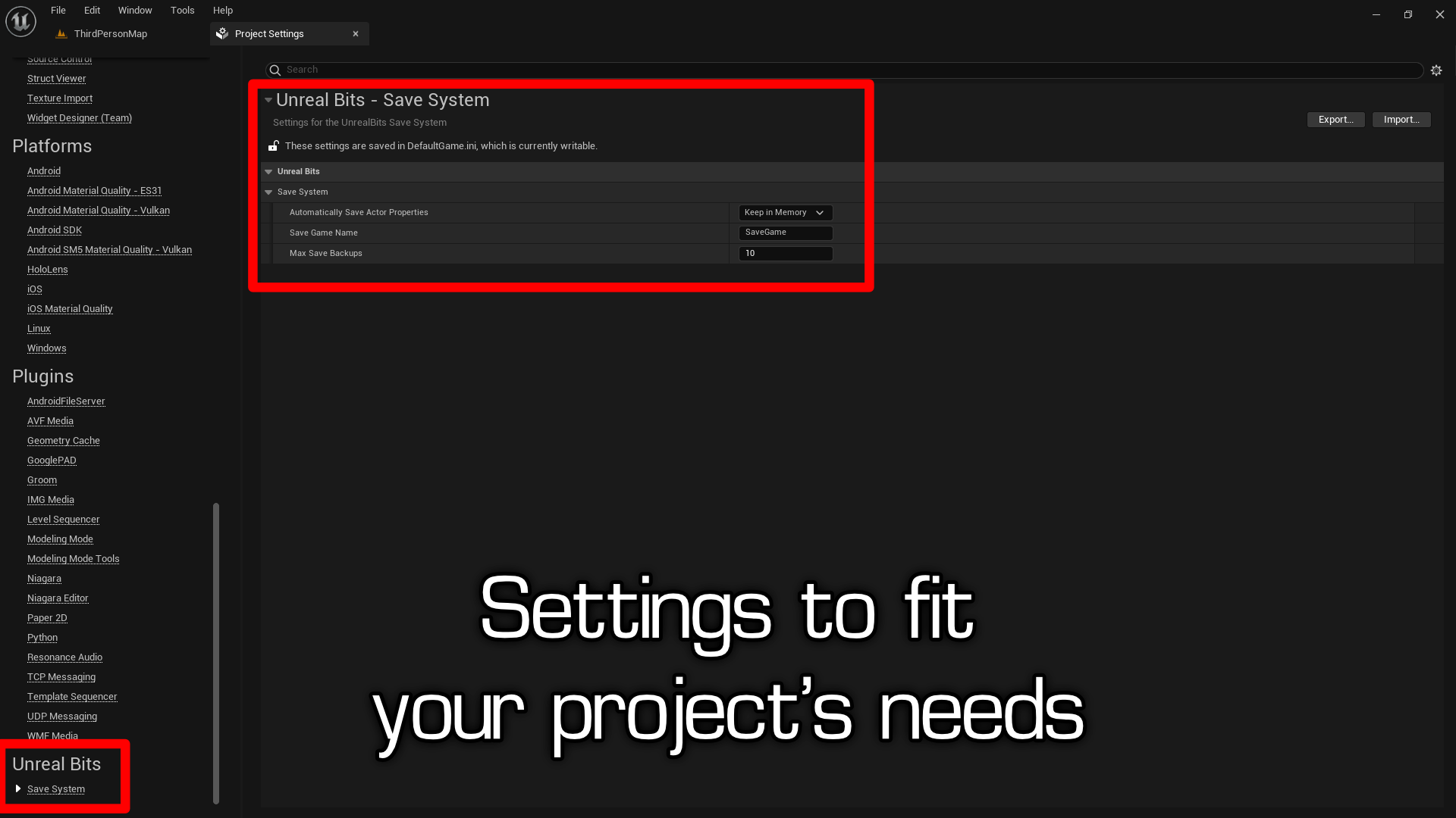 Enhance your project’s save system and deliver a reliable, comprehensive gameplay experience to your players with the UnrealBits Save System Plugin.