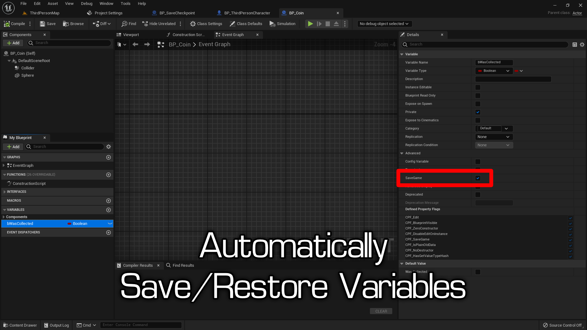- Checkpoint System: Easily manage checkpoints where all actor variables marked as SaveGame are automatically saved either to a file or in-memory. Effortlessly restore data during game load or selectively save/restore data for specific actors. Includes a function for clearing checkpoint data when needed.